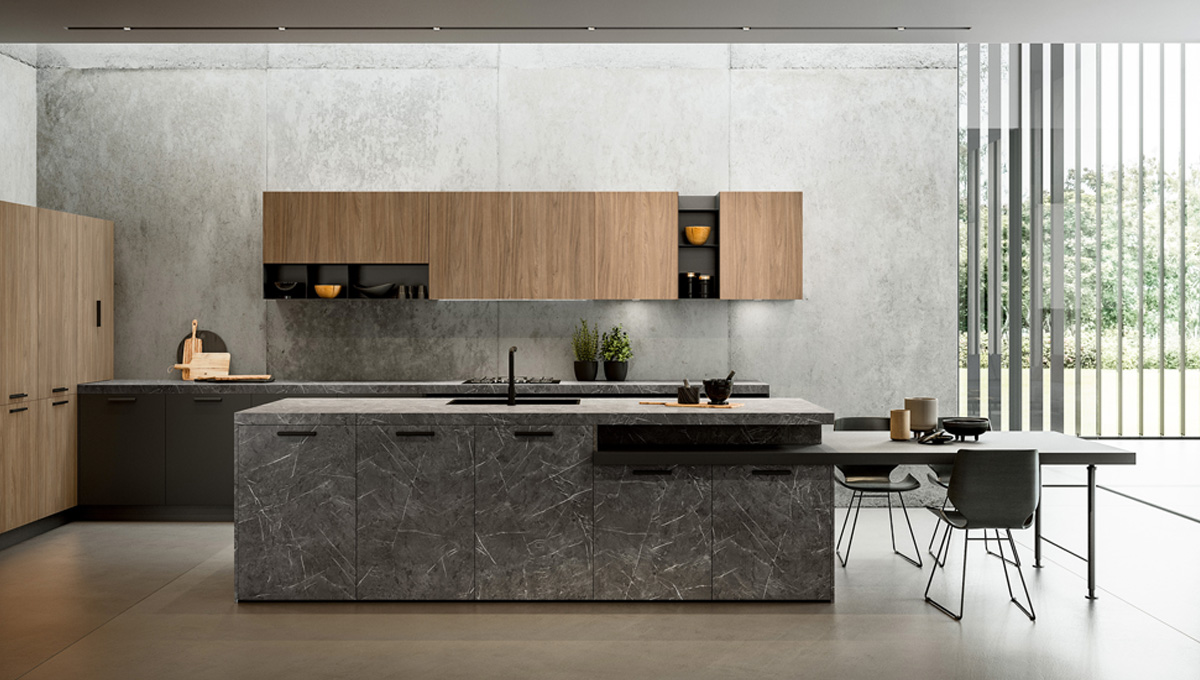 La ricerca formale interpreta gli stili di vita contemporanei per esprimere in ogni modello la bellezza della cucina italiana: comfort, dinamismo e libertà di movimento.